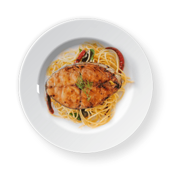 Spaghetti with grilled mackerel